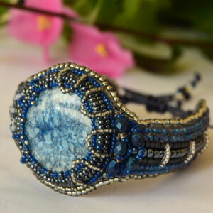 Bransoleta premium Niebiesko-Srebrna z kamieniem