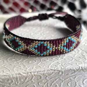 Bransoletka Bordowo-Turkusowa z Geometrycznym Wzorem